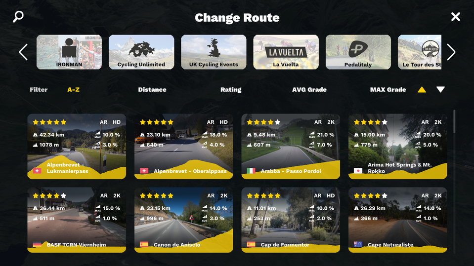 32か国、700以上の街や山、観光地などがルートとして撮影されているので、観光気分で毎日走ることができます。いつものコースに飽きた、旅ラン&ライドしたい、今日は天気が悪いけれど走りたいなど、好きなタイミングで楽しめるのも助かります。