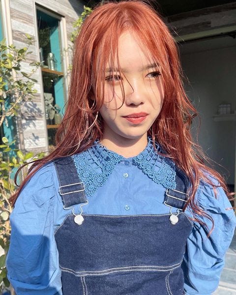 明るいヘアカラーを希望する人には、オレンジみが強いオレンジアッシュも人気です。