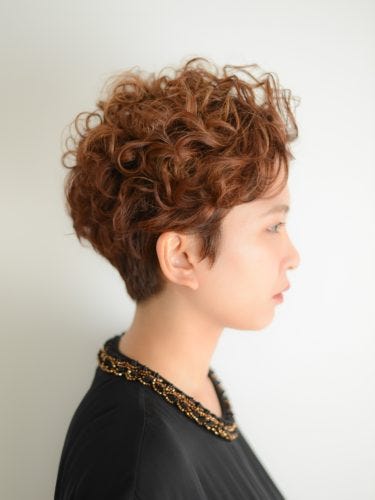こちらは、トップにふんわり感と束感を出したショートレイヤーに、しっかりめのランダムパーマをプラスした立体感のあるヘアスタイル。