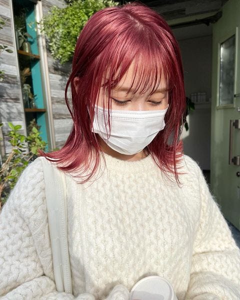 こちらはブリーチありのピンクオレンジです。発色のよいピンクのヘアカラーをブレンドすると、赤みが強い雰囲気になります。