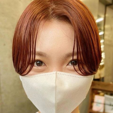 こちらは、丸みのあるシルエットが女性らしいマッシュショートに、オレンジのぬくもり感とアッシュの透明感をミックスさせたおしゃれなスタイル。