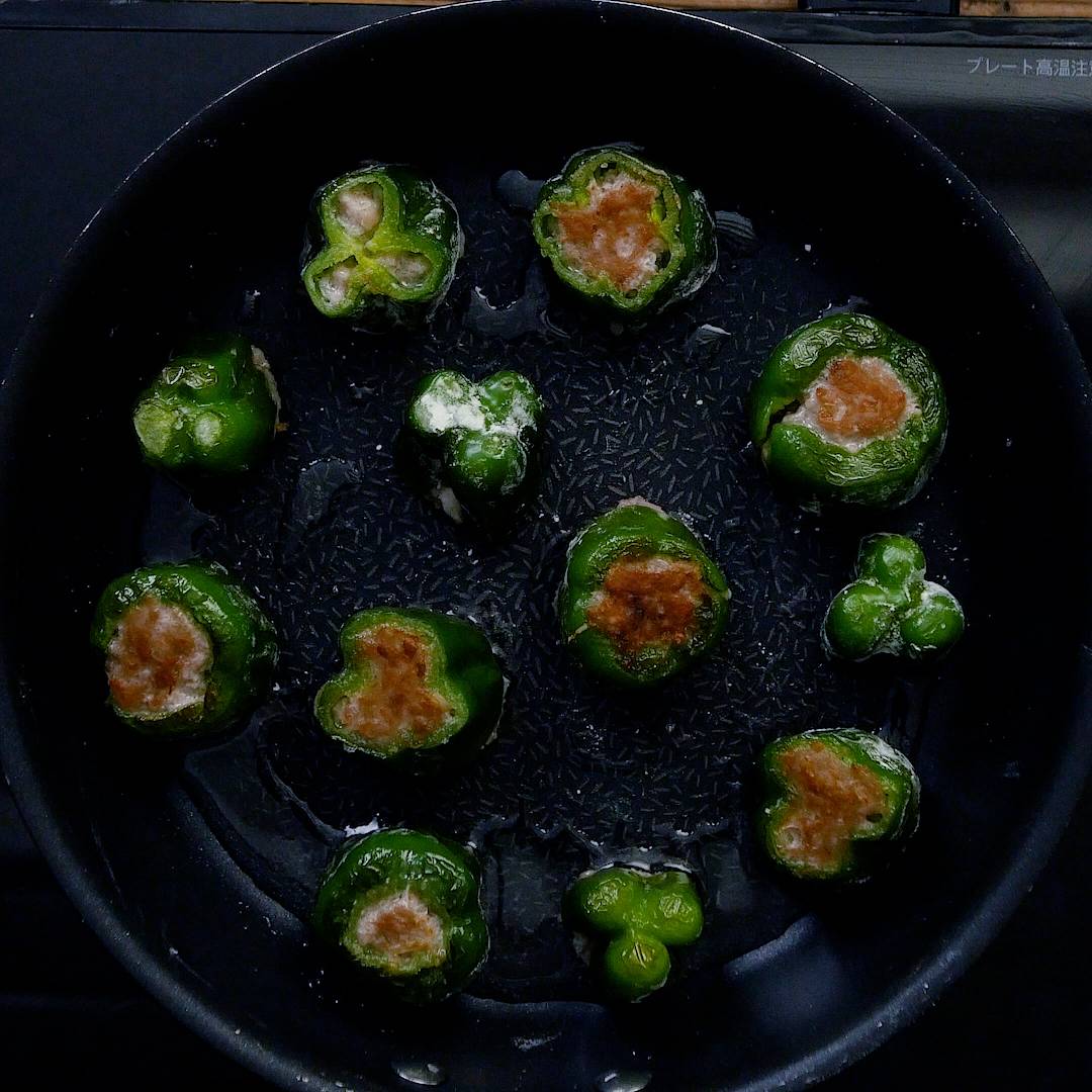 【材料】輪切りピーマンの肉詰め(2〜3人分)