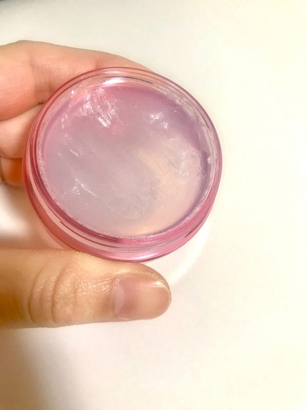 見た目はこんな感じ。無色透明のバームで、上品なバラの香りが漂います。きつくはないけど、ほんのりっていうよりはしっかりめの香りです。