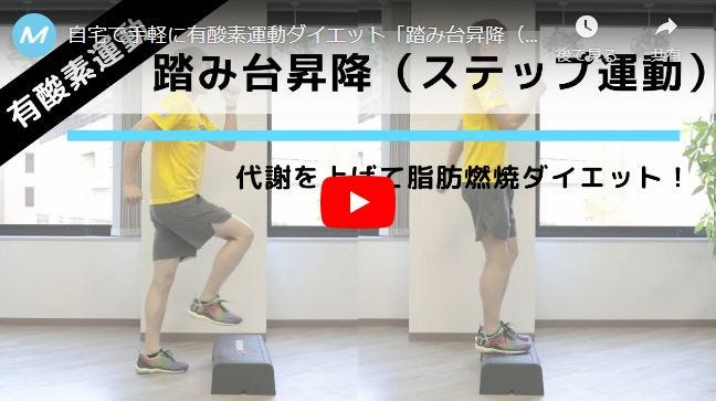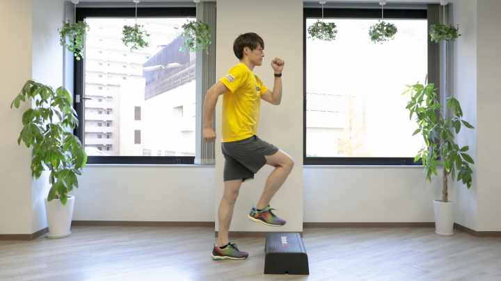 有酸素運動の代表的な種目「踏み台昇降」。段差を上り下りするだけなので、自宅でも手軽に取り組むことができるトレーニングです。