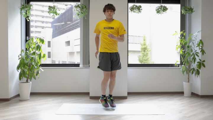 ふくらはぎの筋肉などを鍛えてジャンプ力や瞬発力を高める筋トレ「アンクルホップ(エア縄跳び)」。心肺持久力アップや脂肪燃焼も期待できる有酸素運動なので、ダイエット効果も高いトレーニングです。