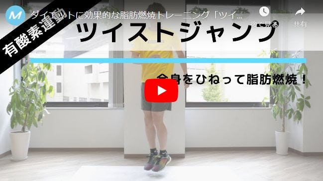 脂肪燃焼に効果的なトレーニング「ツイストジャンプ」。跳ぶ動作にひねりを加えた運動で、手軽にできるダイエットにおすすめのメニューです。