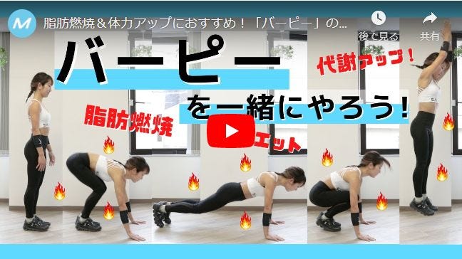 クロスフィットにおいて、もっとも頻繁に行われるワークアウトのひとつ「バーピー」。体全体の瞬発力と敏捷性を高めるプライオメトリクス的効果が期待できるメニューです。