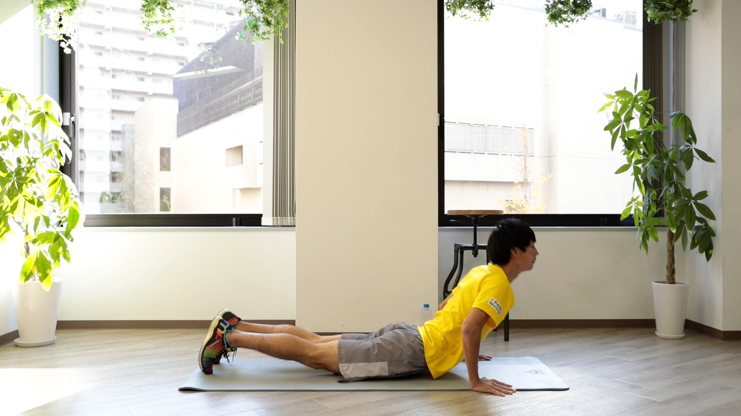 胸を下げたときに息を吐いて、お尻を上げたときに息を吸う。 体全体を大きく動かす。<Text:編集部/Photo:photo-AC>
