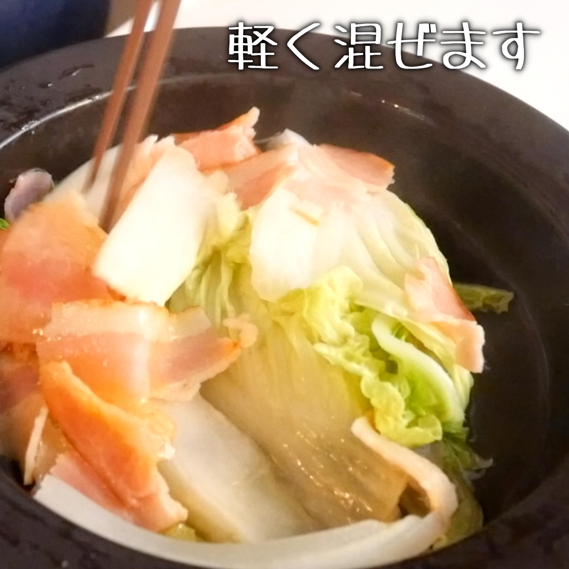 加熱した白菜のやさしい甘さと、ベーコン、とろ〜りとろけたチーズの塩気がベストマッチ・・・何度も作りたくなる旨さ◎