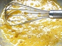 オーブンは160℃に予熱しておく。ボウルに卵を入れてほぐし、砂糖を加えて泡だて器で混ぜる。