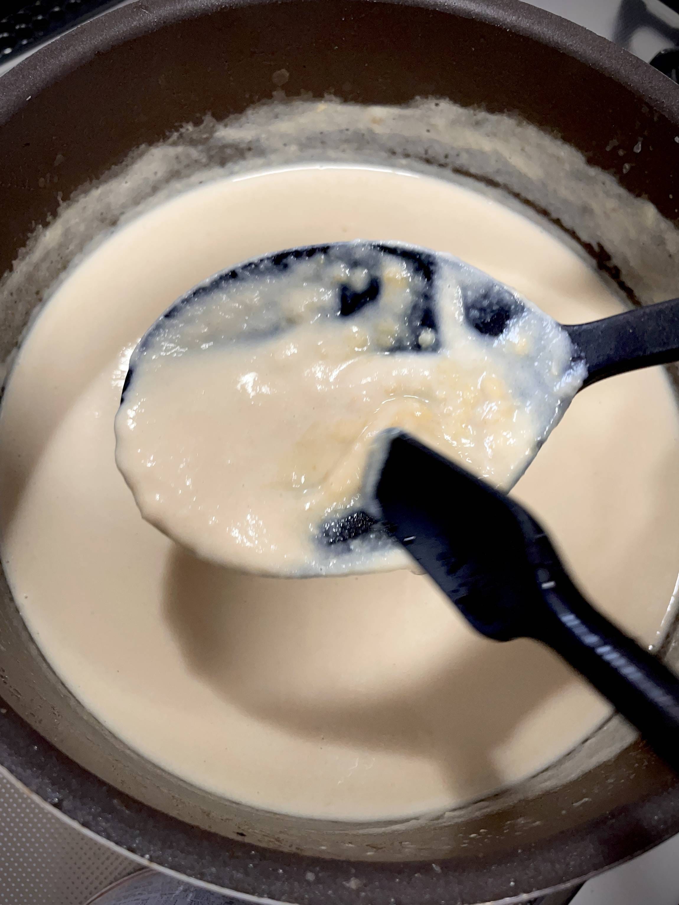 牛乳を加えて温める