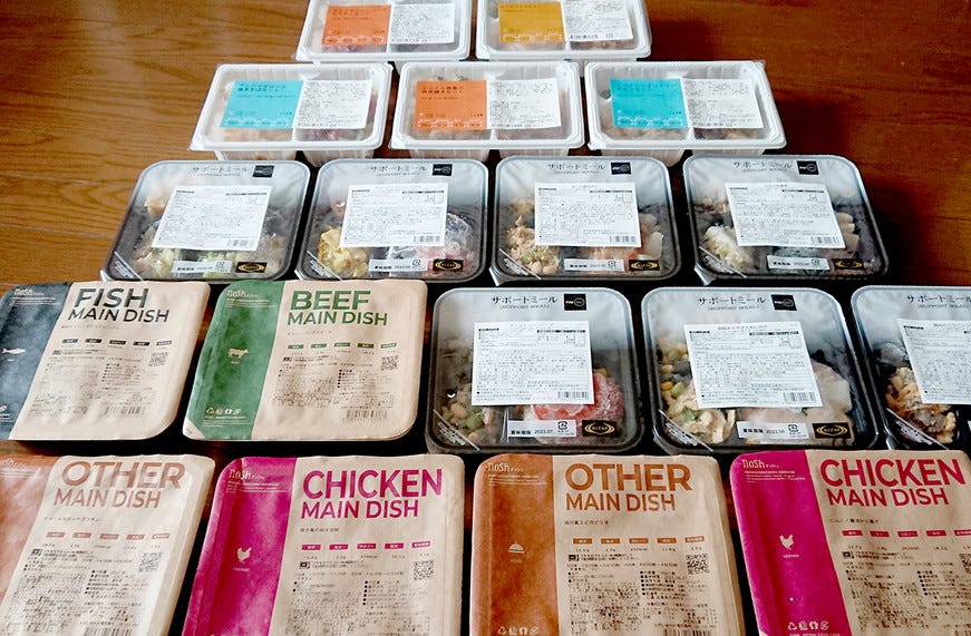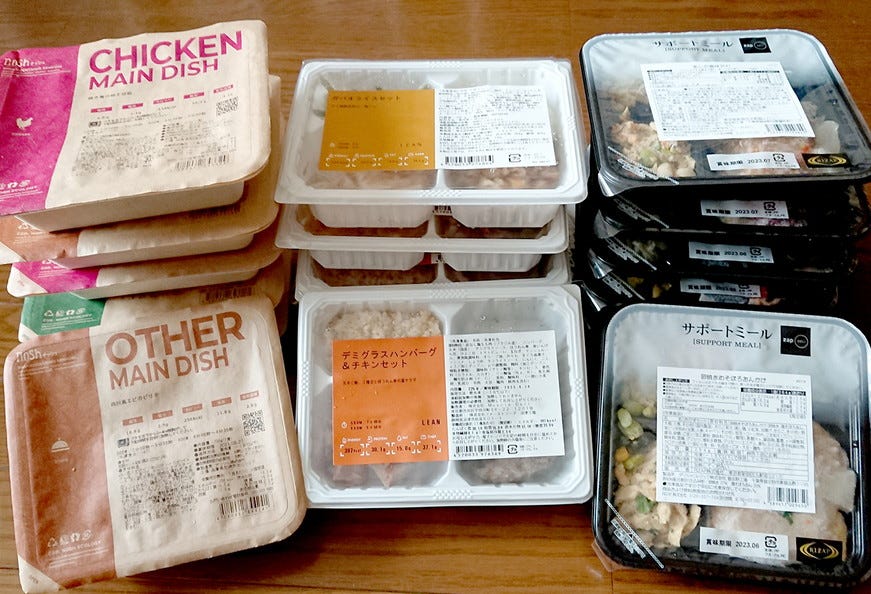 実際に食べたのは、「nosh(ナッシュ)」「マッスルデリ」「RIZAPサポートミール」の3ブランドです。今回はお試しということで、メニューをチョイスできるnosh(ナッシュ)、マッスルデリもおまかせで注文。RIZAPサポートミールは、固定のセットメニューです。