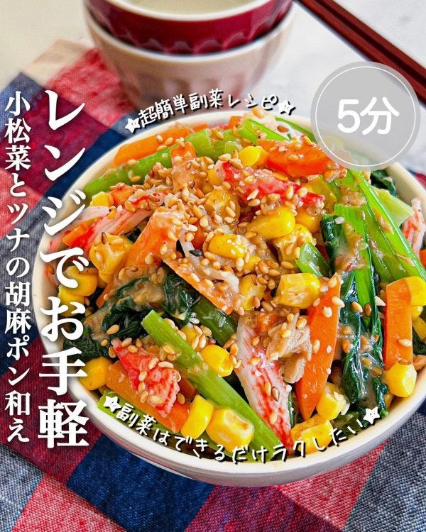 レンジで簡単!小松菜とツナの胡麻ポン和え