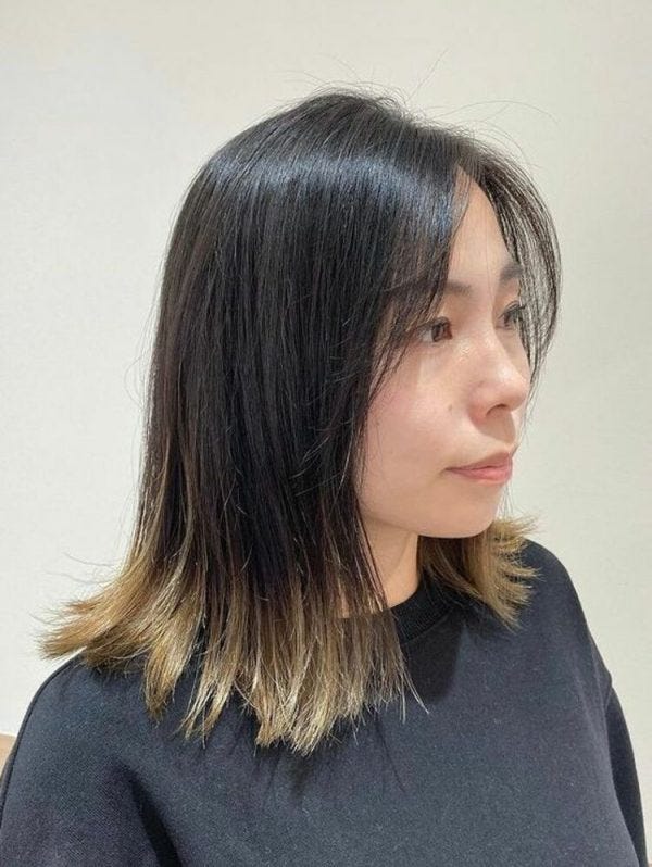 毛先を明るくすると、根本が黒髪や暗髪でもやわらかさがアップします。