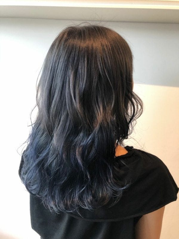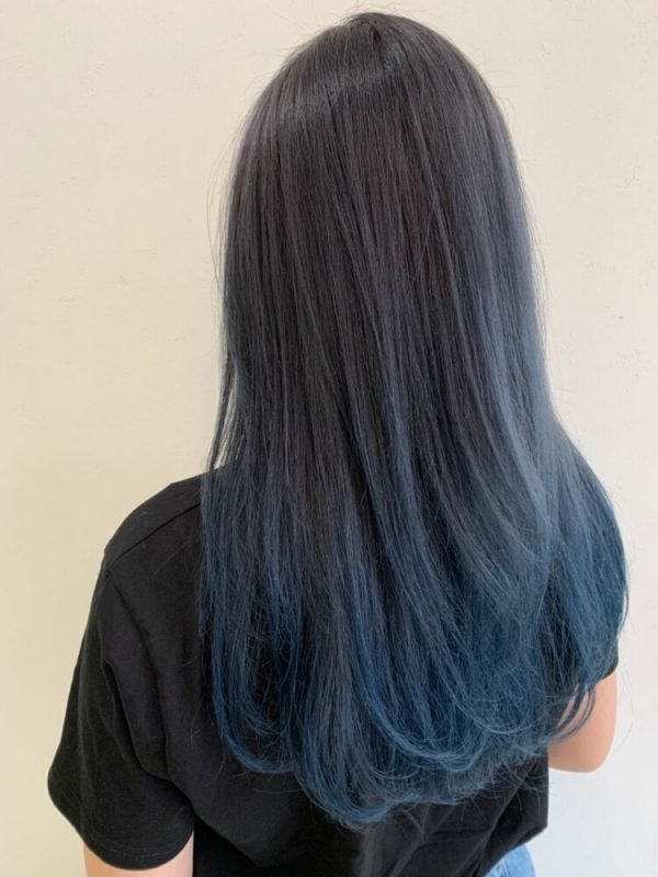 シンプルなストレートロングは暗めの髪色や黒髪だと重くなってしまうこともありますが、毛先にかけて暗めのブルーカラーにすることで、アクセントにもなります。