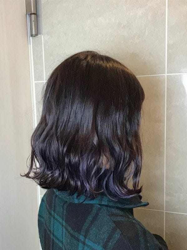 トップの部分は地毛の色を活かし、毛先にかけてブルーバイオレットになるグラデーションヘアカラーにした髪型です。