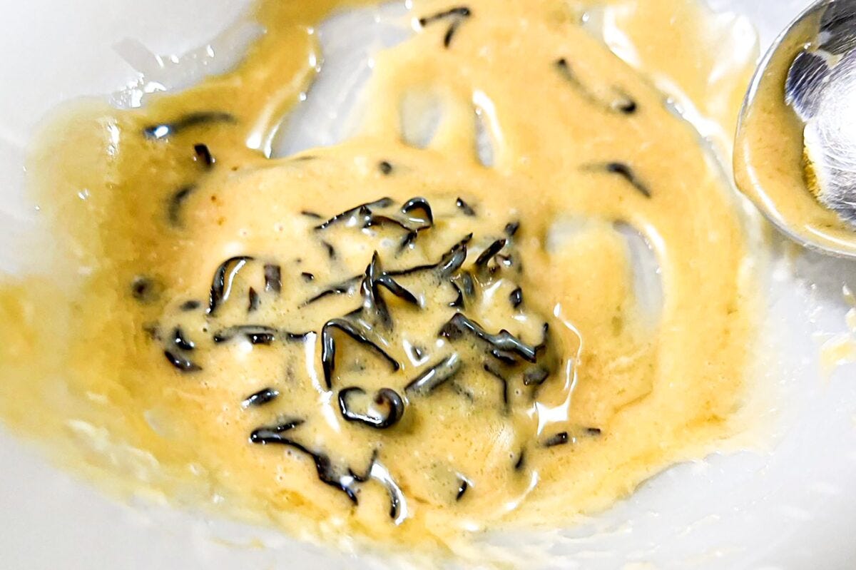 作り方は至って簡単。まずは、ご飯以外の材料を全て器に移してかき混ぜていく。ごま油はしっかりと混ぜ合わせないと、浮いてしまうため、マヨネーズと同化させるようにかき混ぜるといいだろう。