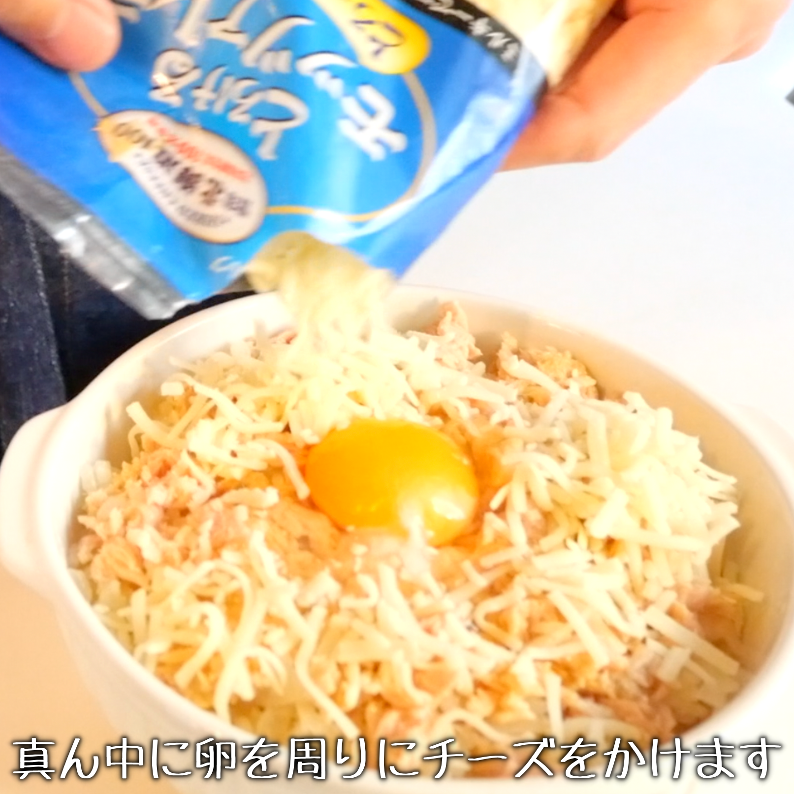 ツナ、卵、チーズをのせる