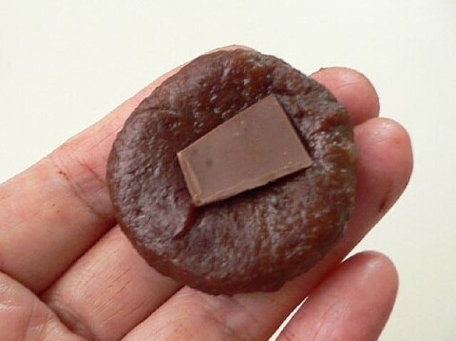 チョコ餅に、芯用に割っておいた板チョコを詰めて丸める。