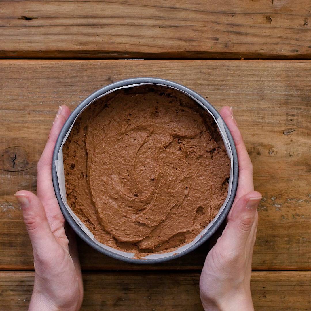 クッキングシートを敷いた型に流し入れ、180℃に予熱したオーブンで40分焼きます。