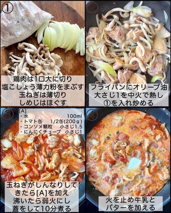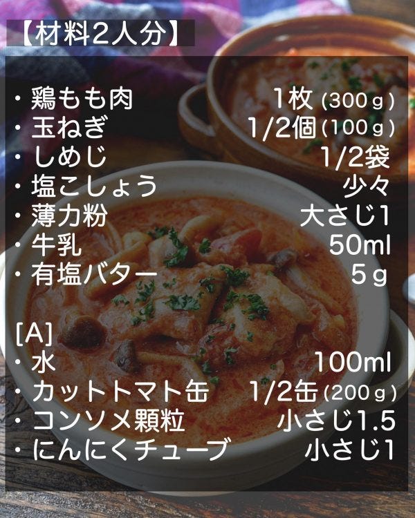 今回は「鶏肉ときのこのトマトクリーム煮」をご紹介します。