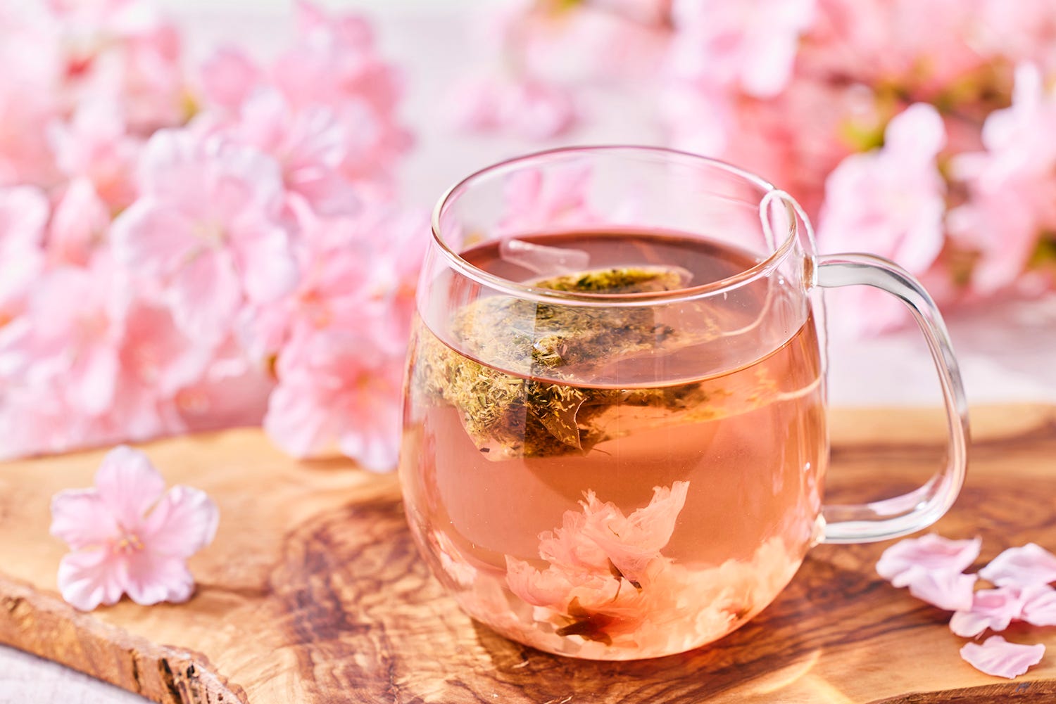 桜がひらひらと舞う、可愛らしい見た目のHOTのハーブティー。ふわりと優しい甘い香りが楽しめるサクラシロップと、デトックス効果の期待できるノンカフェインのカモミールティーを合わせリラックスタイムにピッタリ。