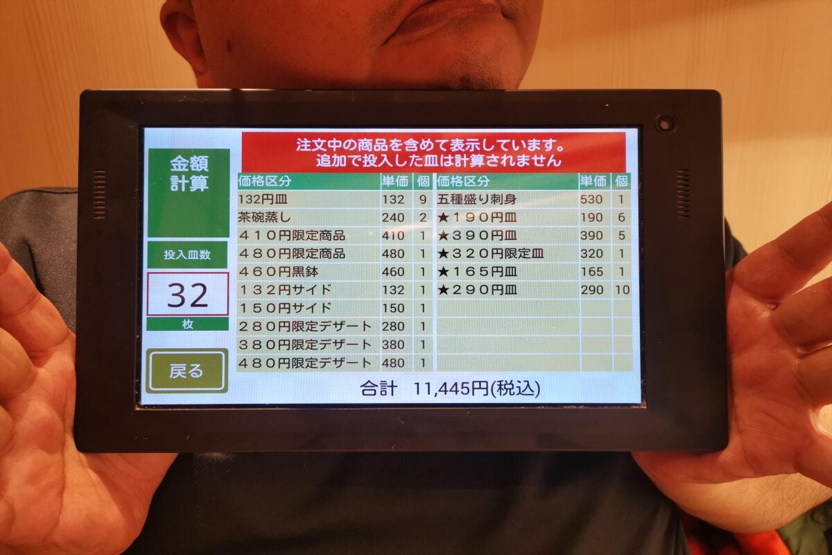 食べ方としてはオーダーを切らさず高単価の寿司を中心にシャリハーフでとにかく満腹感を感じる前にハイスピードで食べ続けることが大事。ある程度金額を頭の中で計算しつつ、目標の1万円を目指そう。