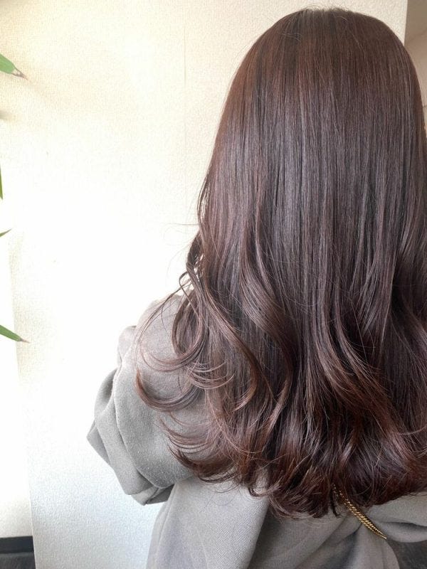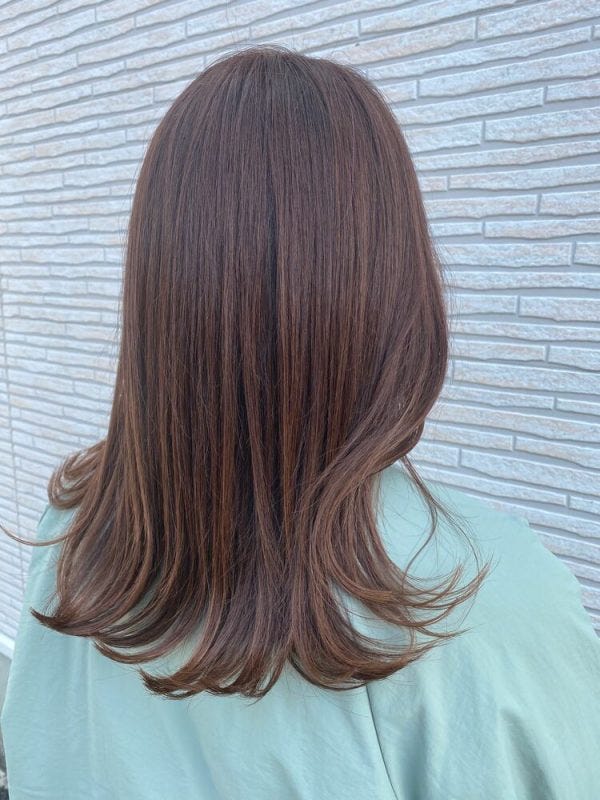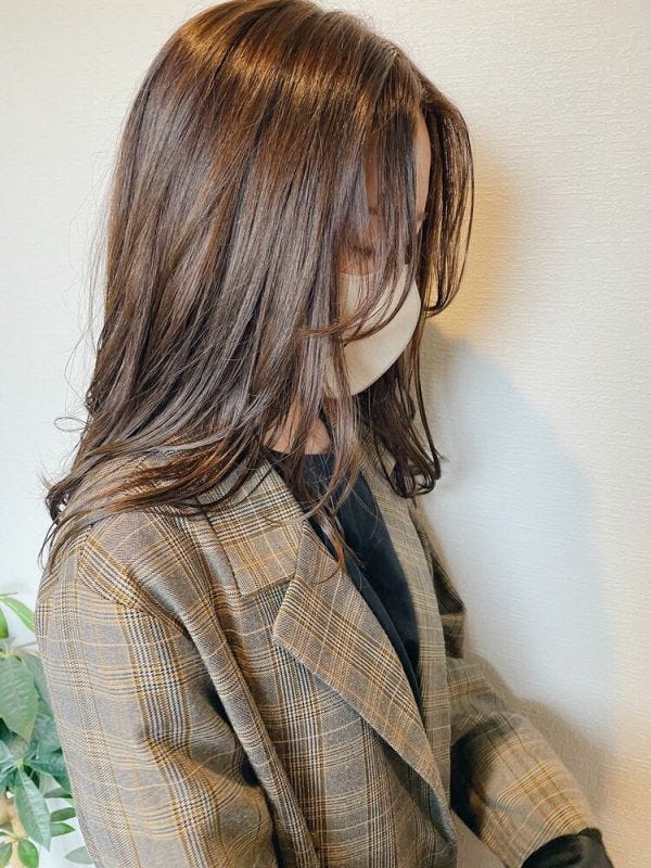 顔周りや毛先などレイヤーの入った部分は明るく見えて、立体感が楽しめる髪色ですよ。