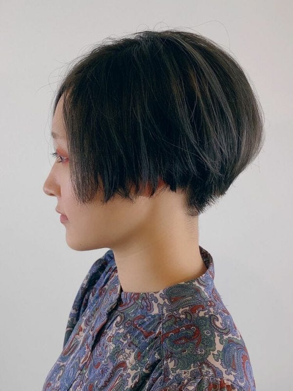 丸みのあるショートヘアにツヤが出るグレージュのヘアカラーの組み合わせは、スタイリングなしでも立体感が出ますよね。