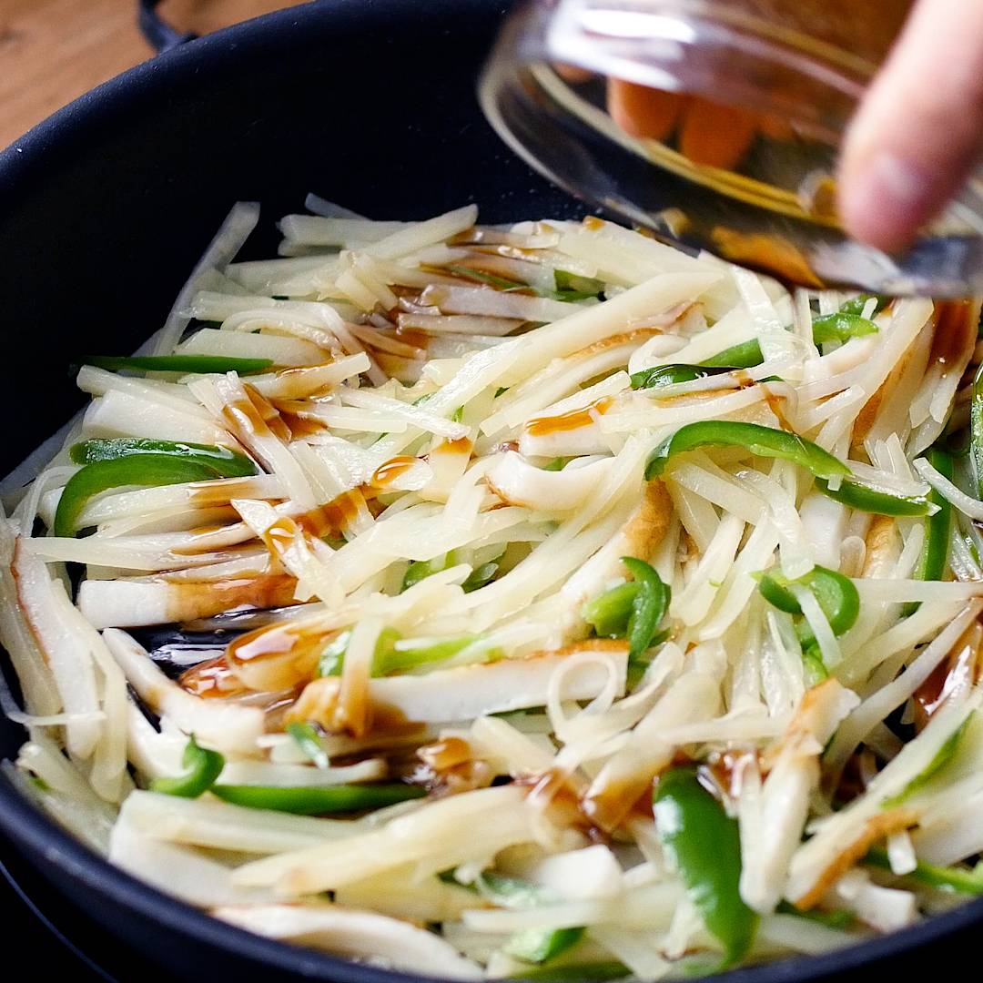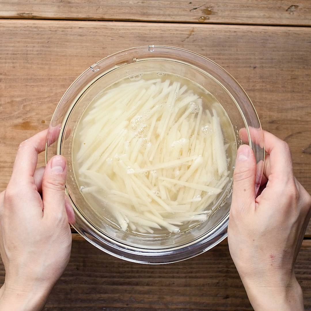 じゃがいもは細切りにします。