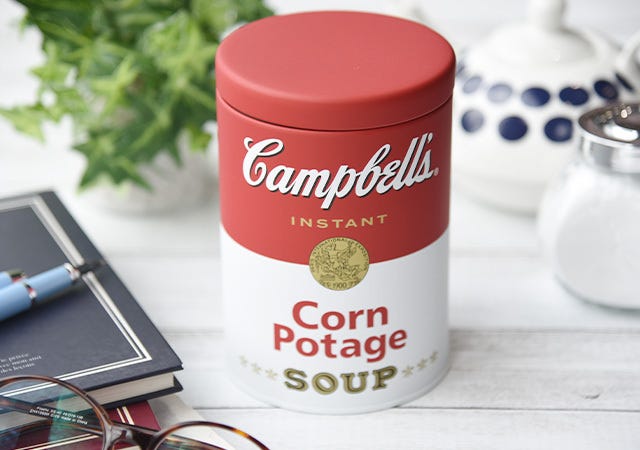 ヴィンテージ感のあるポップな赤と白のカラーが特徴的なキャンベルのスープ缶をモチーフにした『キャンベル インスタントスープ コーンポタージュ5袋入り限定キャニスター缶』がカルディに登場!