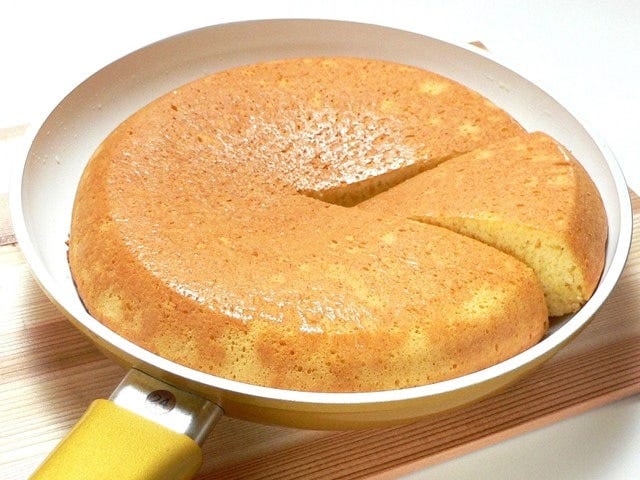 フライパンとホットケーキミックスで作る大きなカステラレシピ