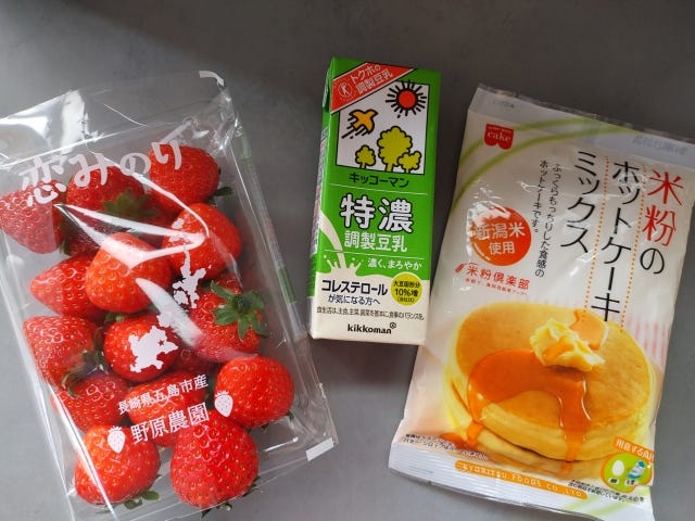 いちごは見切り品でもかまいません。比較的きれいないちごをトッピングすれば、見た目もかわいく仕上がります。見切り品を使う場合は、早めにお召し上がりくださいね!