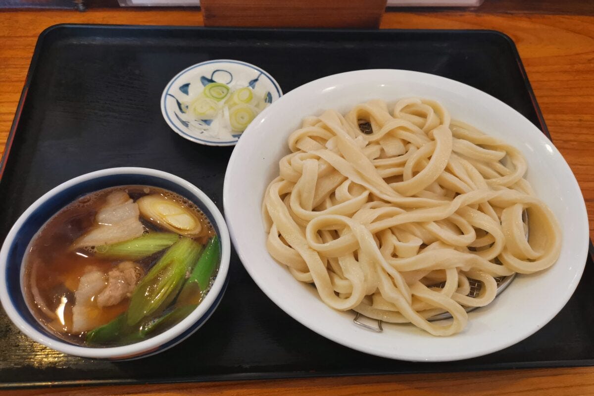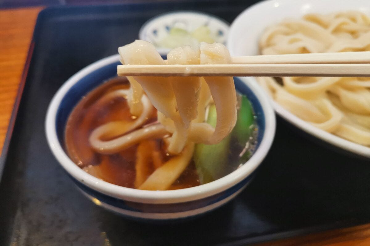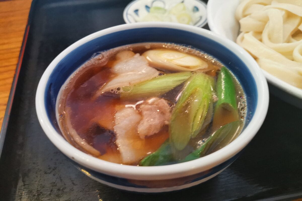 ごわっとした歯ごたえの麺を肉つゆにつけるスタイルで、別名「肉汁うどん」と言われることも多く、中には超人気シェフが大絶賛する店もある。