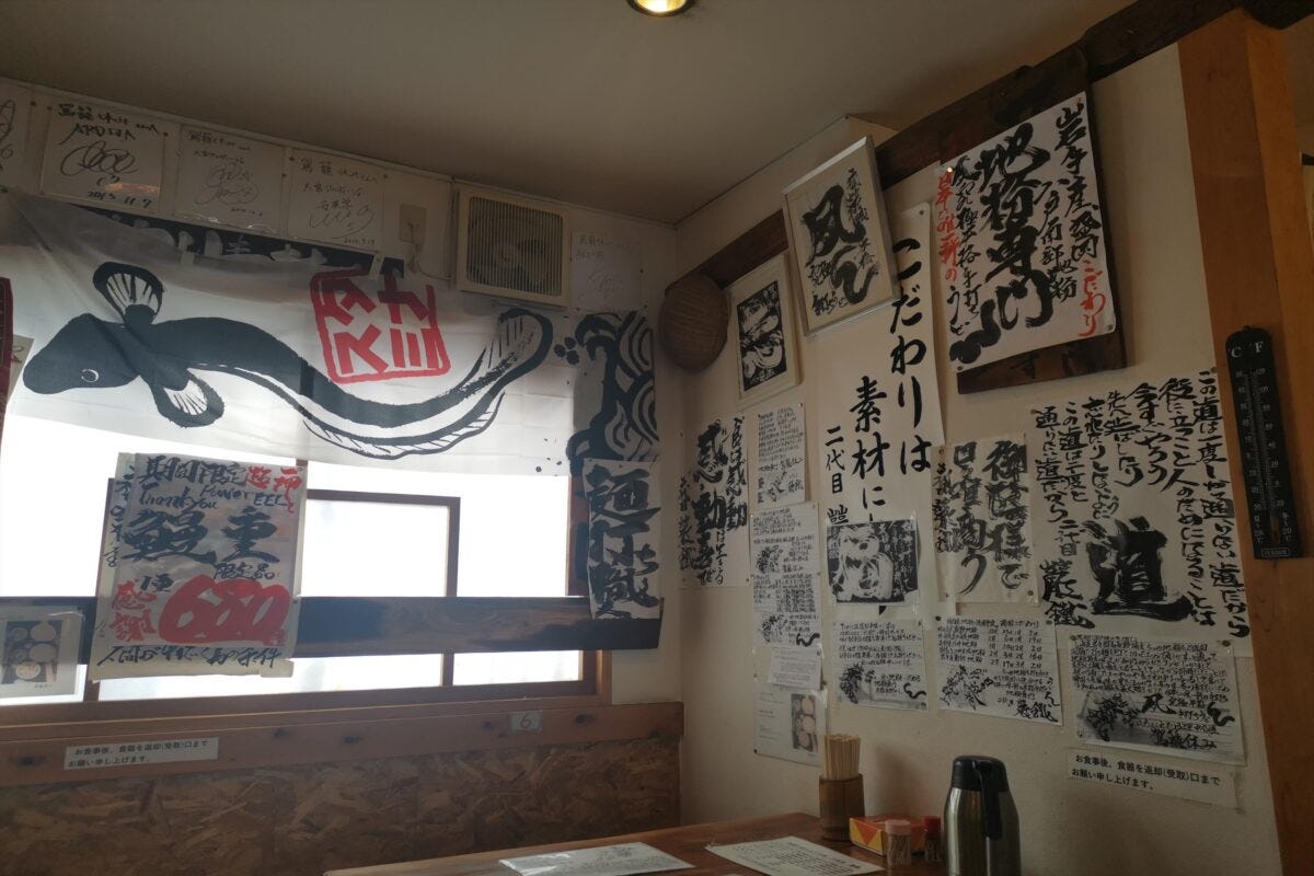 店内に入ると、とにかく張り紙がスゴい。肉汁うどんは小盛り780円からと一般的な値段だが、全国の地粉を時期により変えて使用するなど、こだわりの店でもあるようだ。