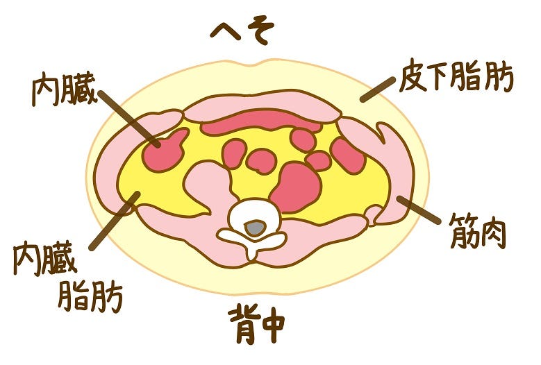 体重や体脂肪はそこそこなのにウエストが太い、また痩せているのにお腹の脂肪だけが気になる人も。とくに女性は下っ腹だけぽっこり出ているパターンもよく聞きます。