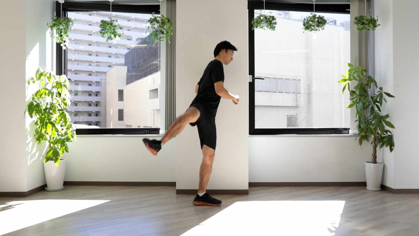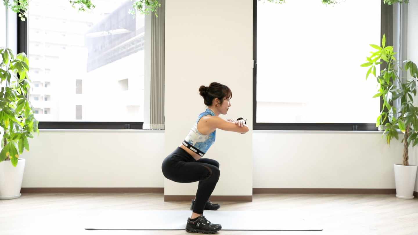 動作の途中でかかとが浮いている腰を落とすとき、かかとがしっかり地面についているか確認しましょう。かかとが浮いていると、体重が前に移動してしまい、バランスが崩れます。