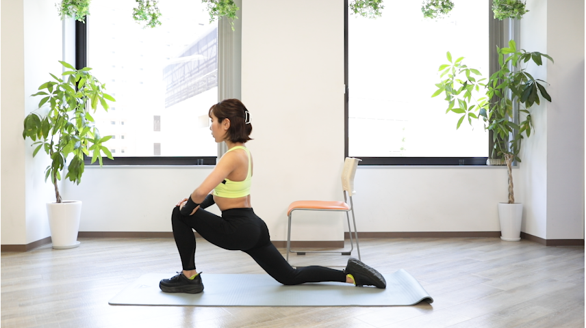 腰まわりや股関節、足首のストレッチを行うスクワットを行う前に、これらの箇所の筋肉をほぐしておくと、フォームや動作が安定するほか、膝関節への負担も減らすことができます。