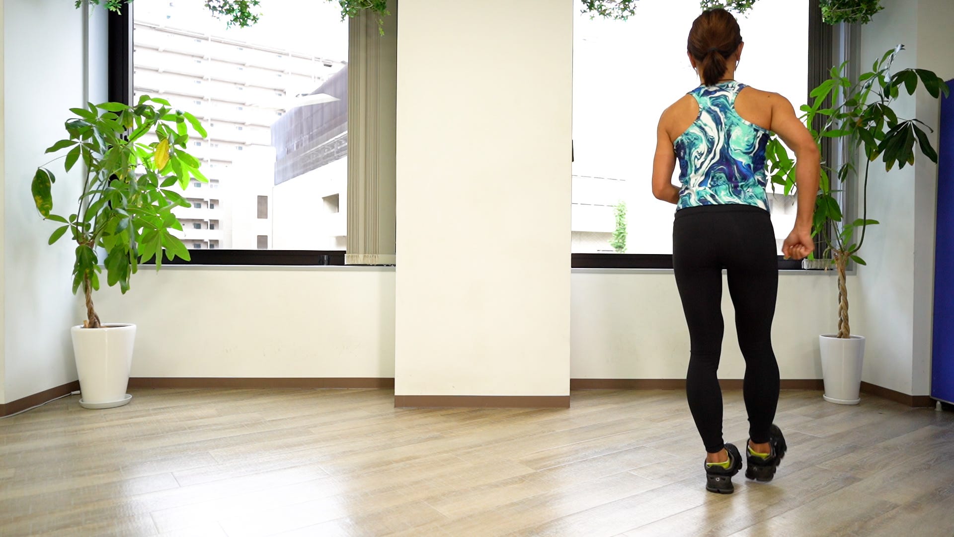 足首ストレッチ:かかと立ちで歩く(60秒)