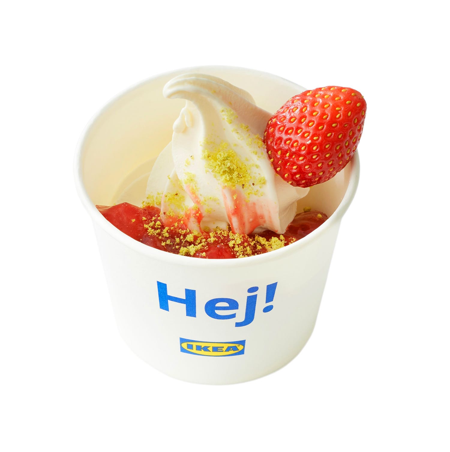 バニラソフトに、フレッシュないちごと甘酸っぱいストロベリーソースをON。