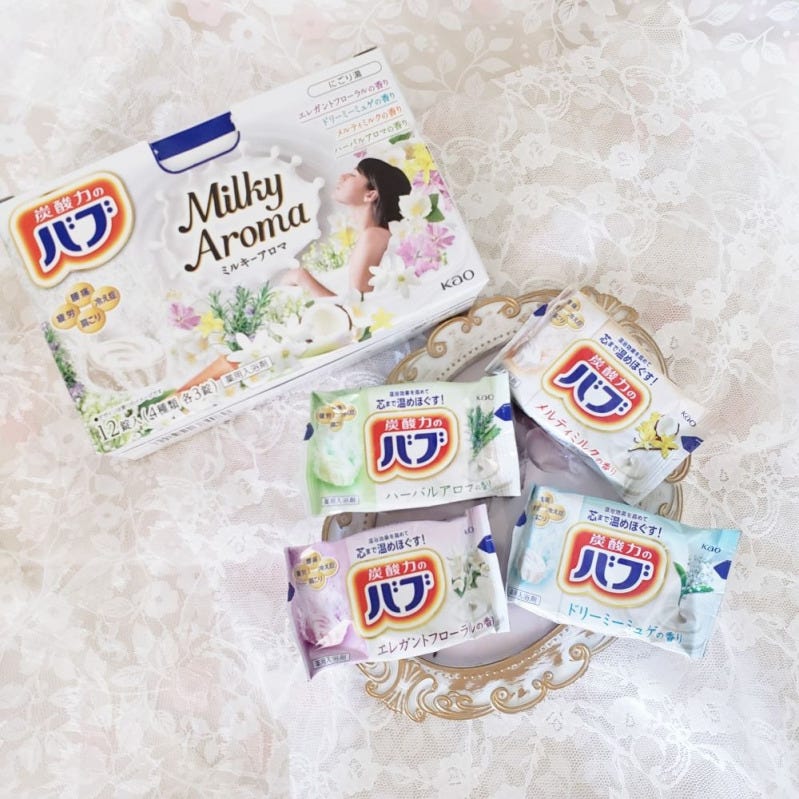 シュワシュワとお湯に溶けていく様子を眺めるだけで、気分がゆったりするバブ!こちらは、エレガントフローラル・ドリーミーミュゲ・メルティミルク・ハーバルアロマの4種類が入ったミルキータイプのセットです。その日の気分に合わせて「今日はどの香りにしようかな~」と選ぶ時間も日々の楽しみ♪バスタブにバブを入れるだけで、たちまちお湯に溶けながらアロマ調の上質な香りが浴室いっぱいに広がっていきます。