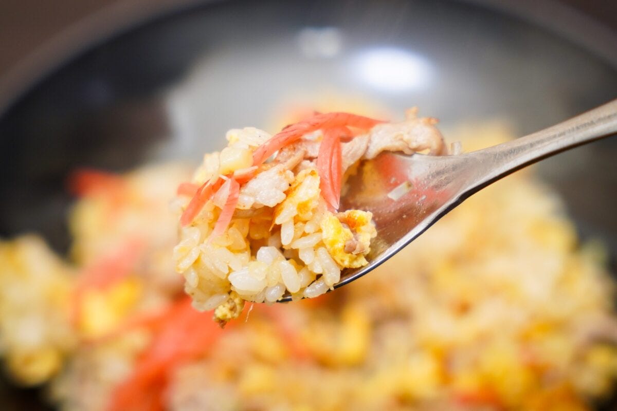 完成した炒飯がこちら。一口食べると...シンプルで美味い!