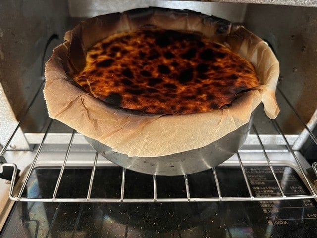 口の中でとろける味わいのバスク風チーズケーキ。オーブンや特別な器具を使わずに、オーブントースターでできるレシピです。