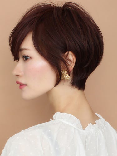 暗めの髪色ながらもやわらかい雰囲気を演出しやすく、丸みがあるシルエットのショートヘアとも相性が抜群ですよ。
