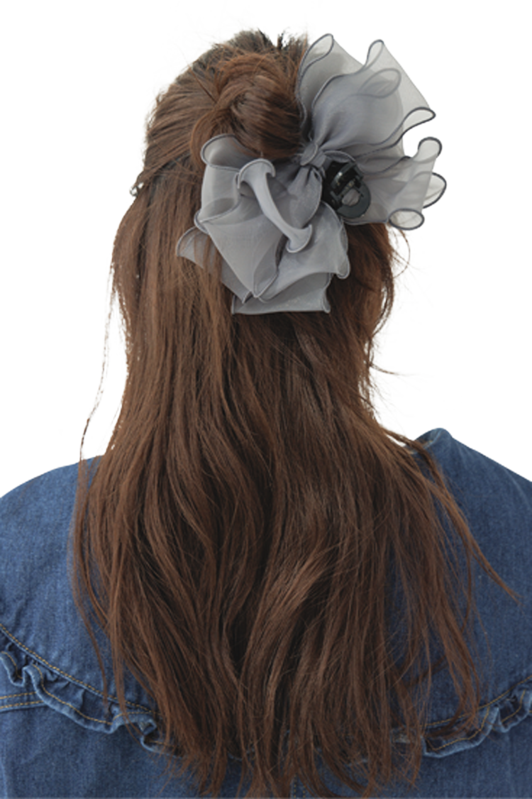 いいコちゃんなイメージのハーフアップが、大きなフリルでぐっと華やかに!トップにフリルがくると幼く見えるので、位置をずらしてこなれ感を出すのがポイントです。