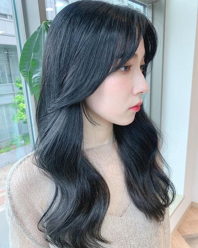 ほとんど黒髪に近い暗めヘアカラーをお探しなら、ブルーブラックを選びましょう。