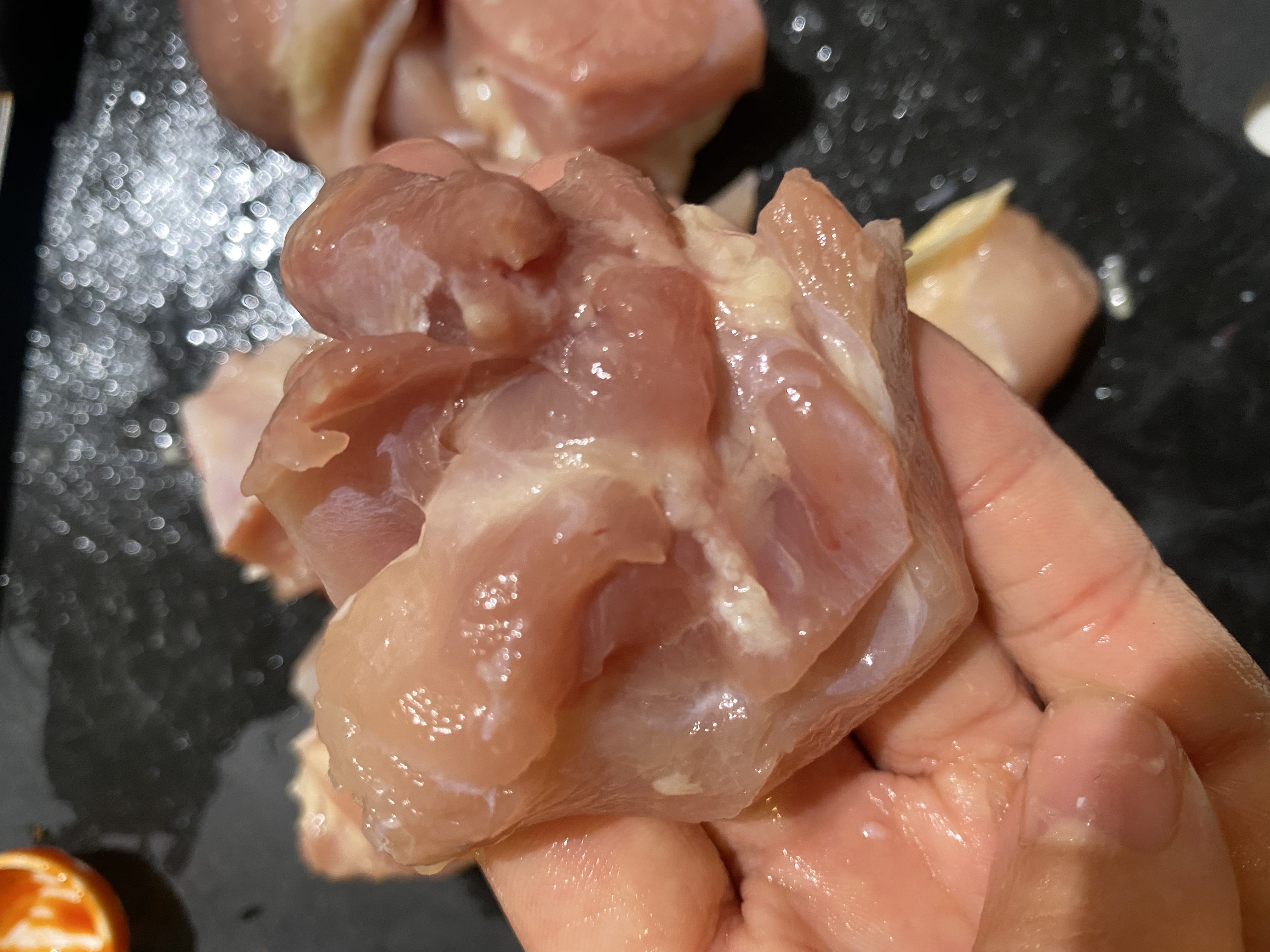 ・鶏もも肉は5cm大のぶつ切りにする。