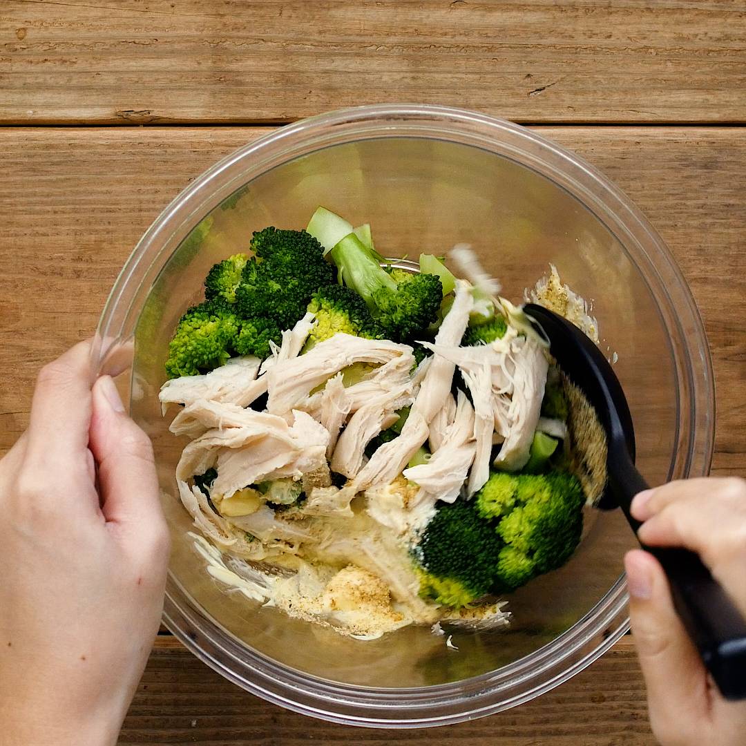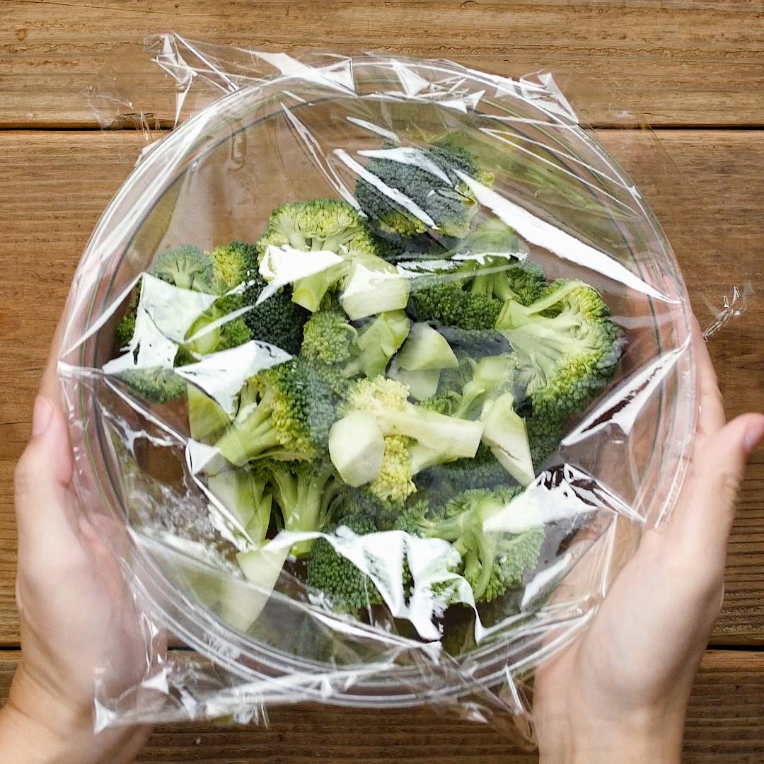 レンジ加熱後、ブロッコリーの水分はしっかり拭き取ってください。