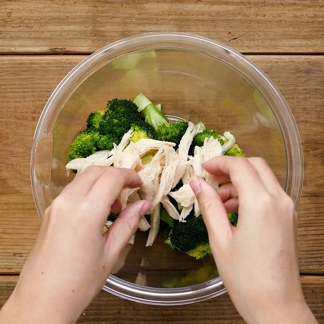 【材料】ブロッコリーとサラダチキンのごまマヨサラダ(3〜4人分)