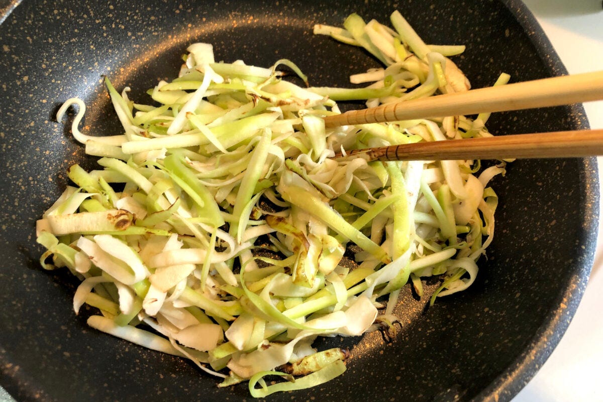 昆布の顆粒だしを入れ、ある程度火が通ったら、醤油をひと回しして、完成です。